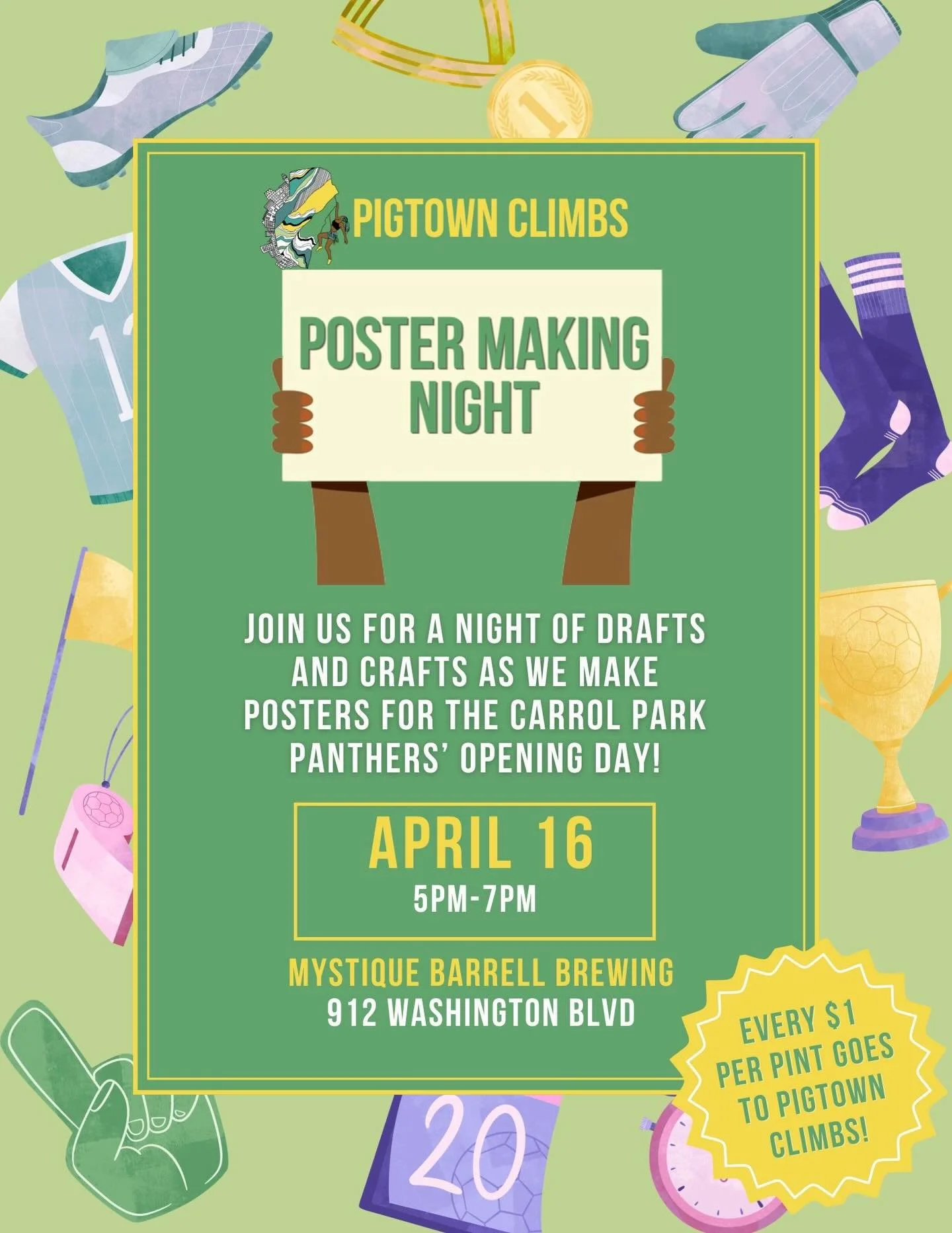 Join us for an evening of climbing, conversation, and community with Pigtown Climbs. Whether youβre new to the sport or a seasoned climber, come move on the wall, meet neighbors, and build our circle of BIPOC climbers!